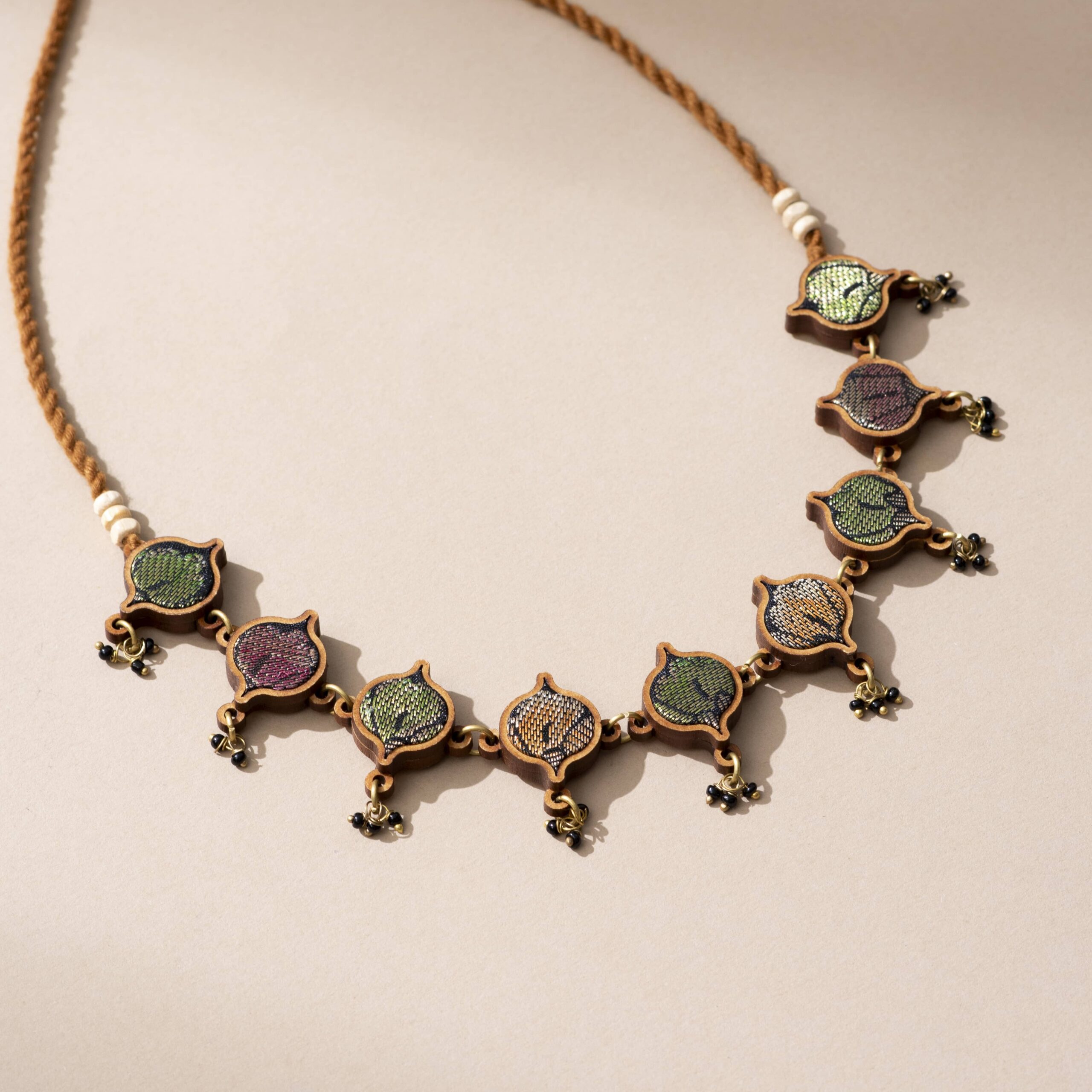 Bring a touch of sustainable elegance to your festive look with this handcrafted choker necklace made from upcycled fabric and reimagined wood. Designed for conscious fashion lovers, this piece blends traditional artistry with a modern, eco-friendly twist.